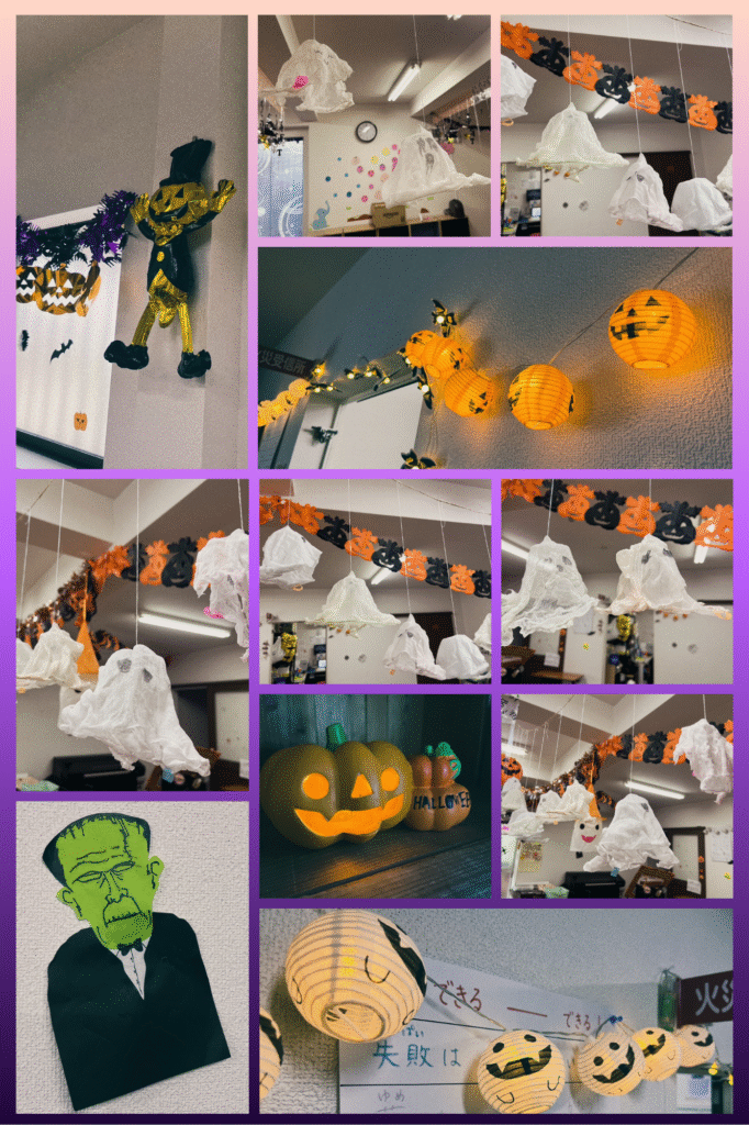 カラフルビーンズでは季節の工作をしたので、施設内におばけがたくさん浮かんでいます👻