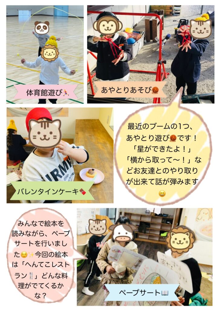 2月も節分にバレンタイン、工作やクッキングなどで季節の催しを楽しみました!