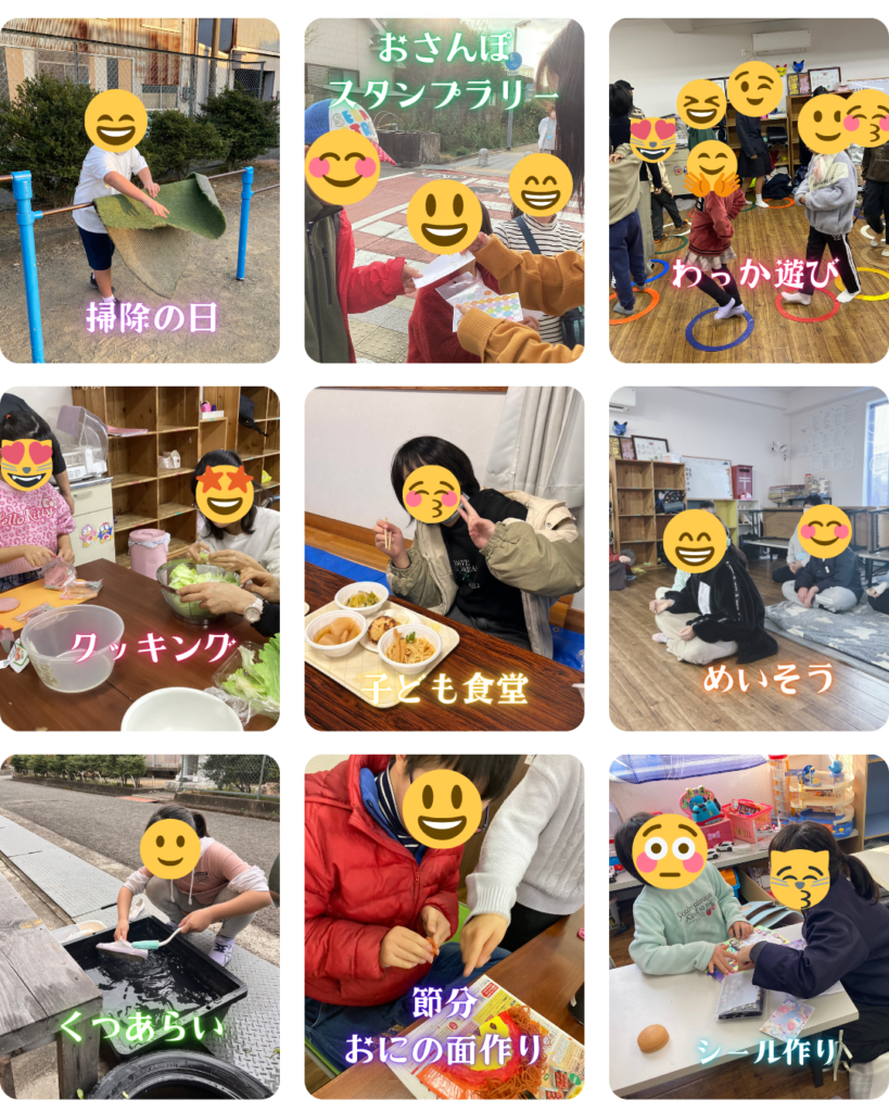 節分があったので鬼の面を作ったり、公園や施設の清掃でみんなとっても頑張ってくれました。