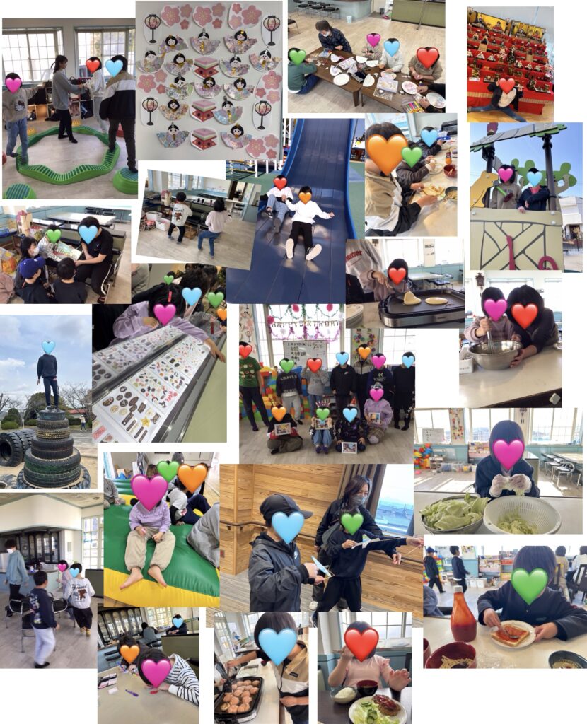3月はお雛様工作🎎をしたり、バランス遊び、ダンス♪、椅子取りゲーム、体育館遊び、公園、おやつクッキング🍳などたくさんのプログラムを楽しみました😊