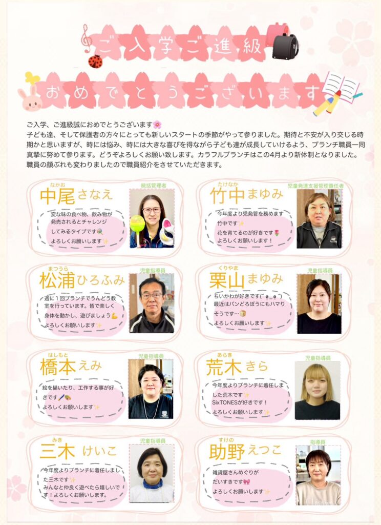 令和8年度のカラフルブランチ職員です。