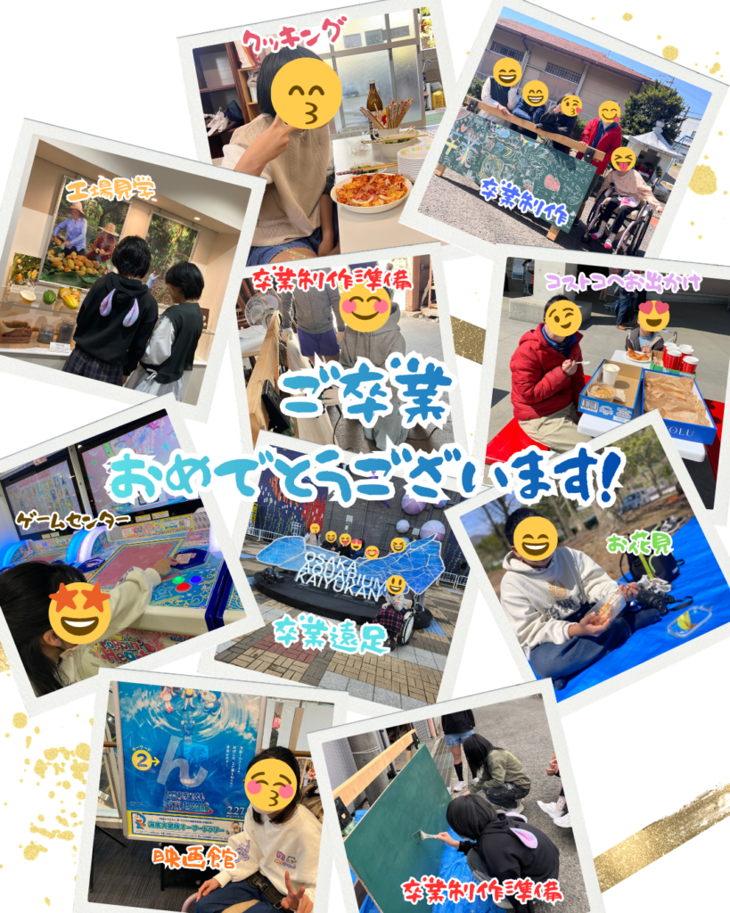 3月中は、卒業制作で木の板から黒板を自分たちで作成して、チョークアートをしましたね。
