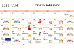 段々と秋らしくなり肌寒い日も増えてきました🍁 天気の良い日には公園やブランチの外でしっかりと身体を動かし体力作りに励んでいます。 10月はハロウィンパーティーを行いました!各々素敵な仮装をみせてくれましたよ👻 他には畑に […]